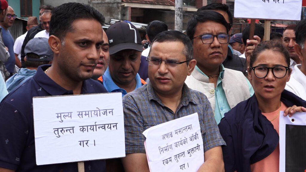 शुक्रबार काठमाडौंको माईतीघर स्थित विनाबजेटको आयोजना टेण्डर गरेर सरकारले भुक्तानीका लागि सडकमा आउन बाध्य भएको भन्दै विरोध गरेका हुन् ।