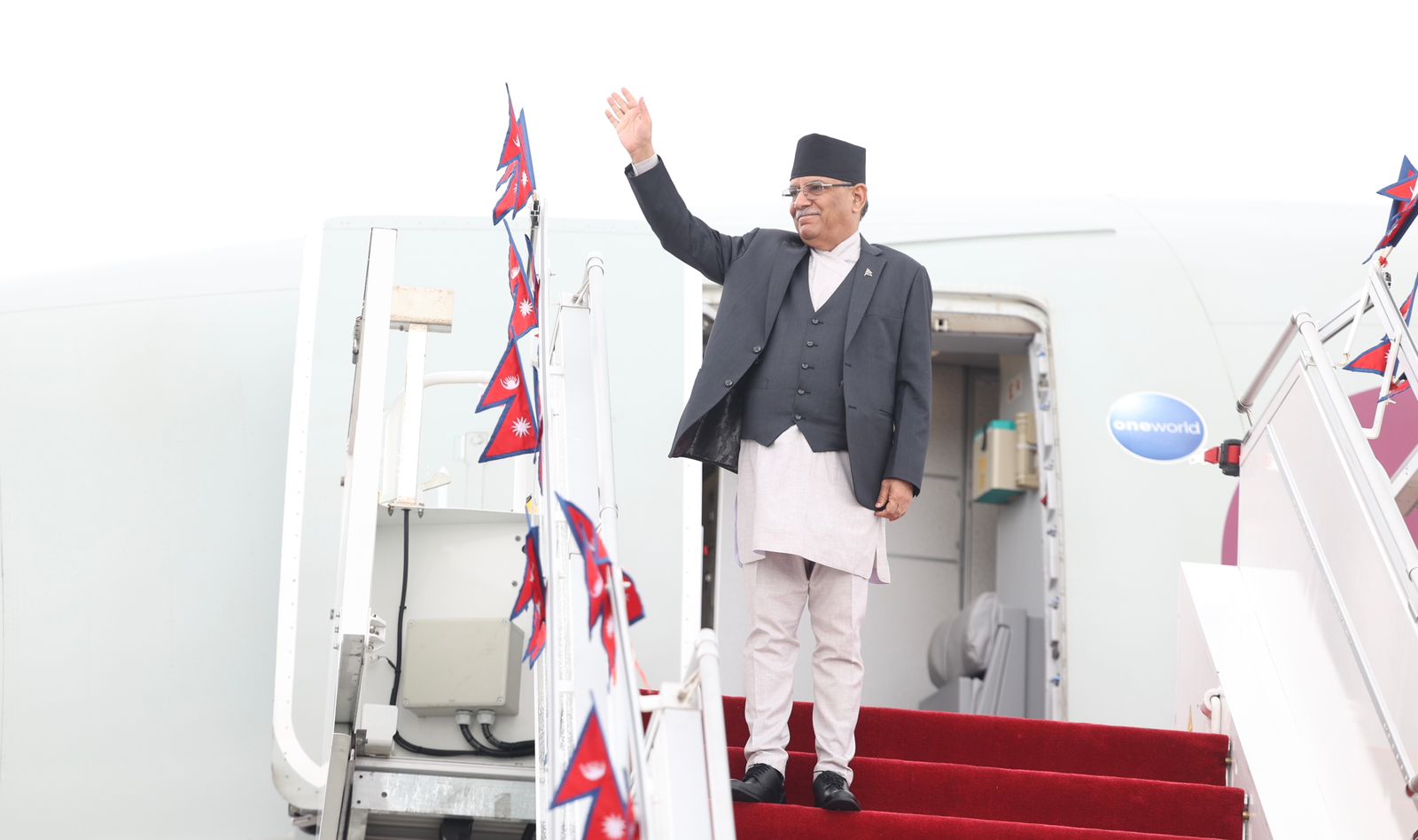 प्रधानमन्त्रीको स्वागतमा सभामुख, राष्ट्रियसभा अध्यक्ष, उपप्रधानमन्त्रीद्वय पूर्णबहादुर खड्का र नारायणकाजी श्रेष्ठ, अन्य मन्त्री, सुरक्षा निकायका अधिकारीलगायत विमानस्थल पुगेका थिए ।